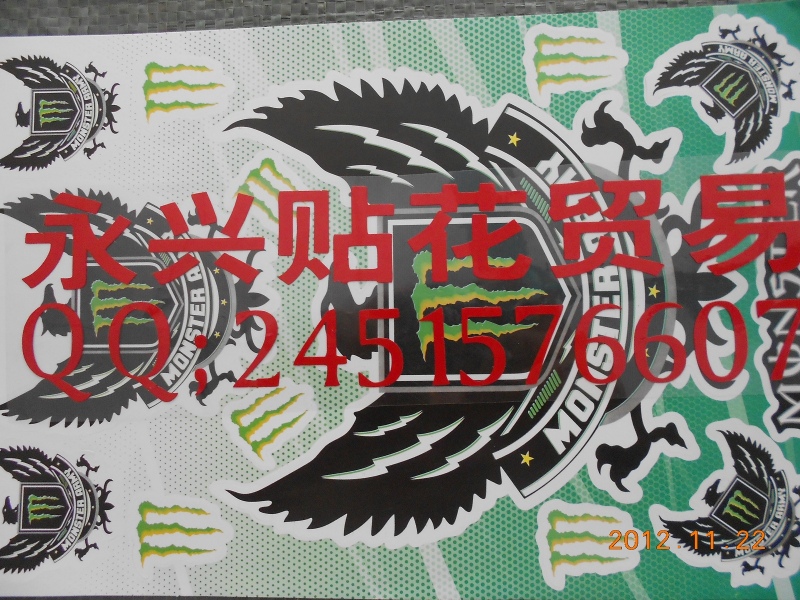 广州永兴贴花贸易商行主营摩托车贴花、电脑刻字等系列摩托车贴花产品,专业生产批发各种摩托车贴花,产品时尚大方,远销东南亚,欧美,台湾,大陆及世界各地市场。本公司拥有完整、科学的质量管理体系,确保产品质量的稳定性。秉承互惠双赢,诚信至上的经营理念,为客户提供更多优质的产品和服务。欢迎各界朋友莅临本公司参观、指导和业务洽谈。 Guangzhou Yongxing Trading Main motorcycle decals decals, lettering and other motorcycle decals computer products, professional production and wholesale all kinds of motorcycle decals, generous fashion products exported to Southeast Asia, Europe, Taiwan, mainland China and world markets. The company has a complete and scientific quality management system to ensure product quality stability. Adhering to mutual benefit, integrity first business philosophy, to provide customers with more quality products and services. Welcome friends to visit our company, guidance and business negotiation.