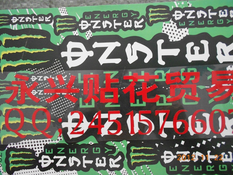 广州永兴贴花贸易商行主营摩托车贴花、电脑刻字等系列摩托车贴花产品,专业生产批发各种摩托车贴花,产品时尚大方,远销东南亚,欧美,台湾,大陆及世界各地市场。本公司拥有完整、科学的质量管理体系,确保产品质量的稳定性。秉承互惠双赢,诚信至上的经营理念,为客户提供更多优质的产品和服务。欢迎各界朋友莅临本公司参观、指导和业务洽谈。 Guangzhou Yongxing Trading Main motorcycle decals decals, lettering and other motorcycle decals computer products, professional production and wholesale all kinds of motorcycle decals, generous fashion products exported to Southeast Asia, Europe, Taiwan, mainland China and world markets. The company has a complete and scientific quality management system to ensure product quality stability. Adhering to mutual benefit, integrity first business philosophy, to provide customers with more quality products and services. Welcome friends to visit our company, guidance and business negotiation.